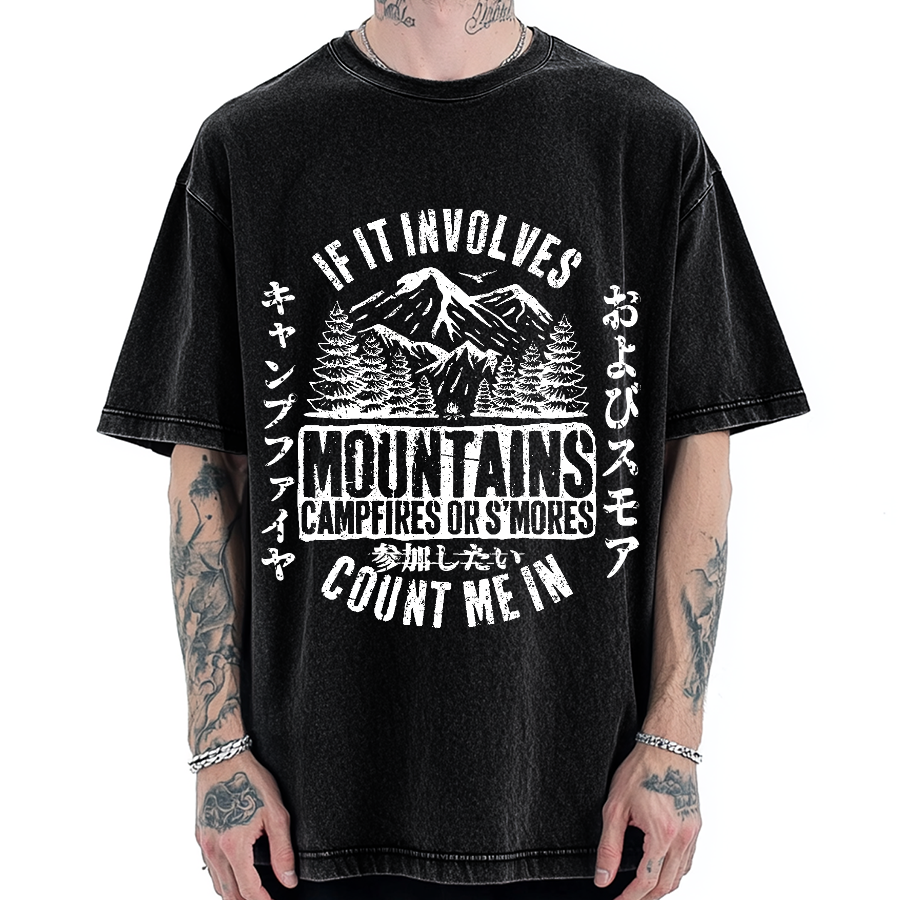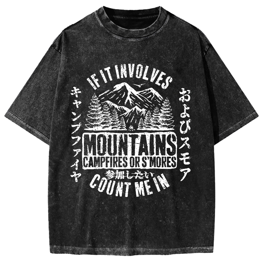 Funny Camping Mountain Quote If It Involves Mountains Count Me in Japanese Vintage Washed T-shirt