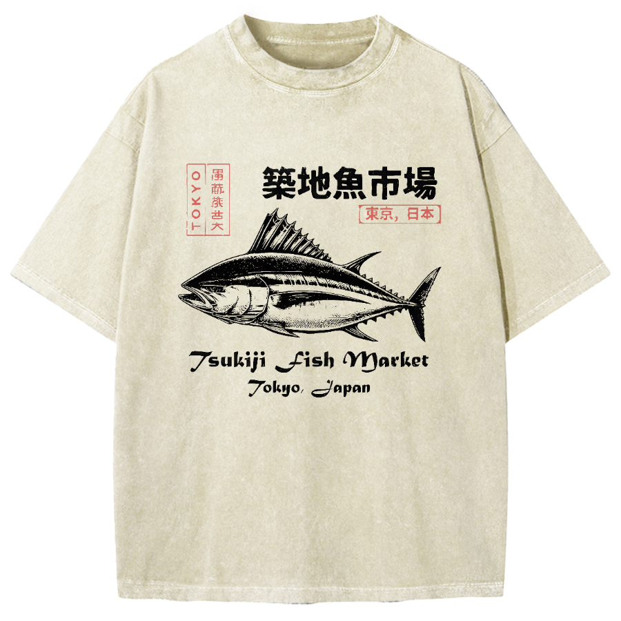 Tsukiji Market Tuna 築地市場 マグロ Vintage Washed T-shirt