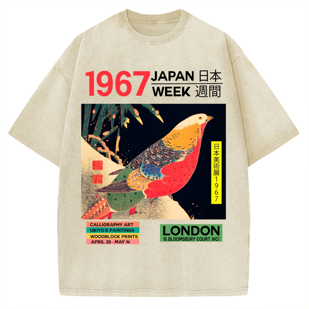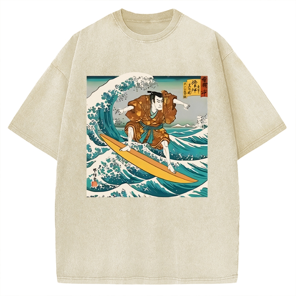 Funny Samurai Ukiyo-e Vintage Graphic Washed T-shirt