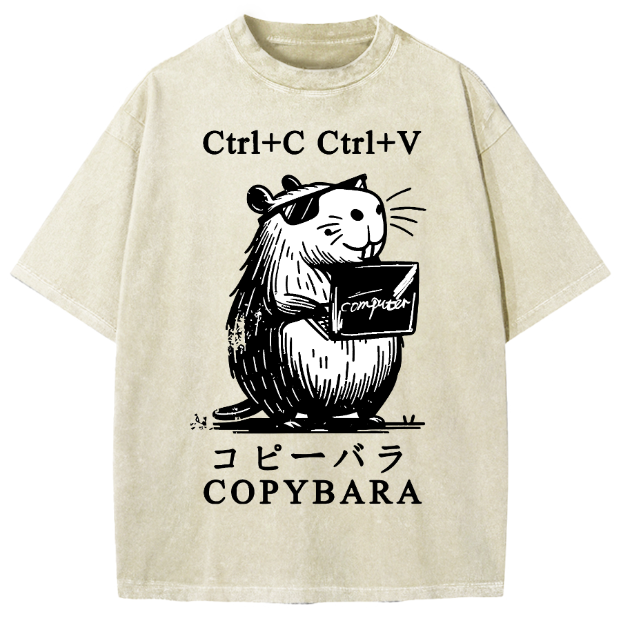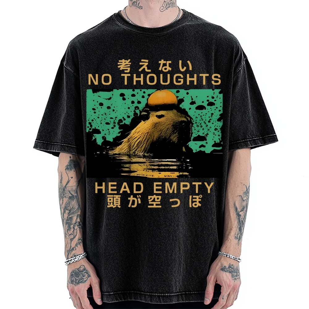 Capybara No Thoughts Head Empty Vintage Washed T-shirt