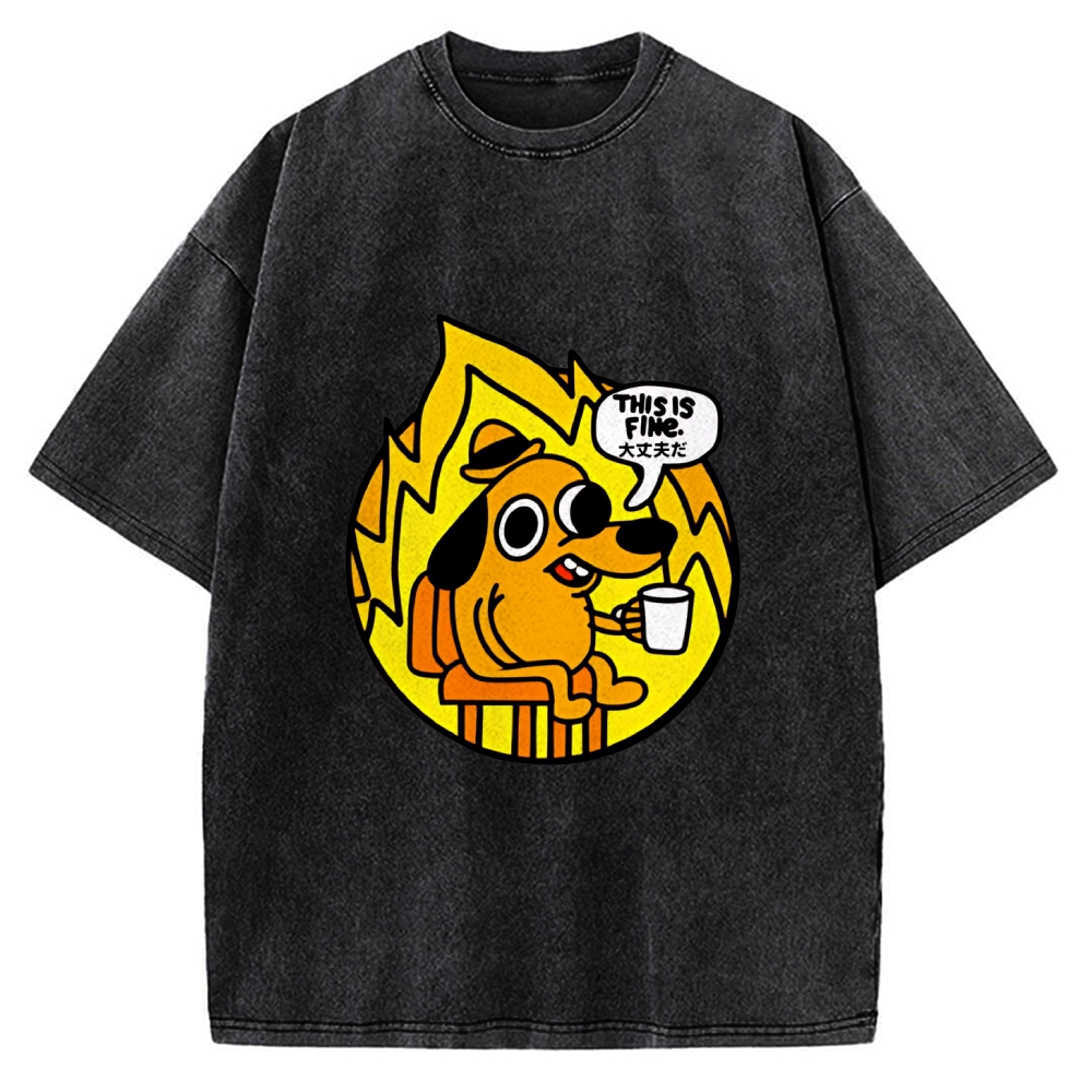 This Is Fine Doggo meme Vintage Washed T-shirt