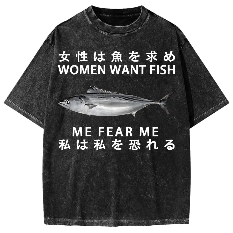 Women Want Fish Me Fear Me Vintage Washed T-shirt