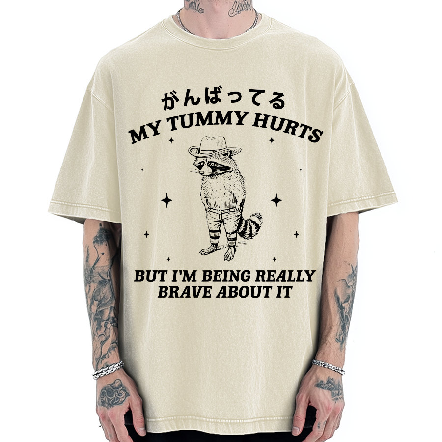 My Tummy Hurts But I'm Being Really Brave About It Bandit Raccoon Vintage Washed T-shirt