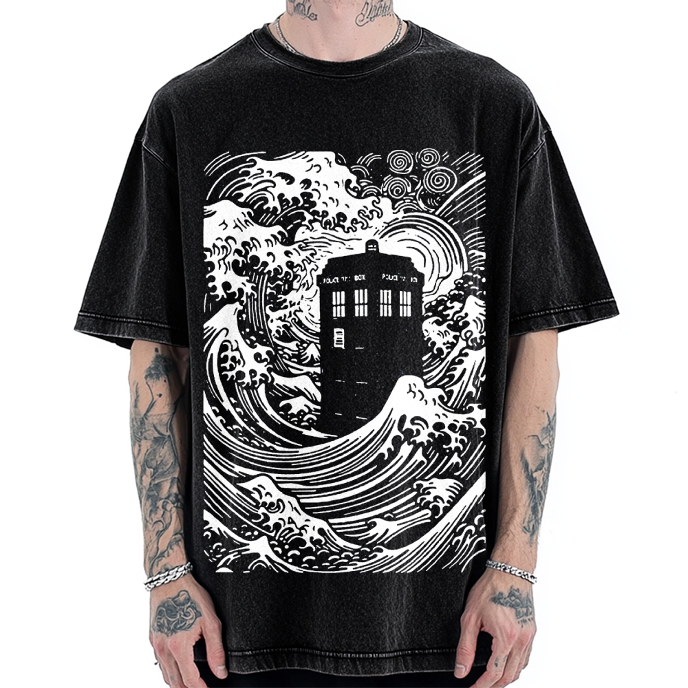 Telephone Booth In The Great Waves Vintage Washed T-shirt