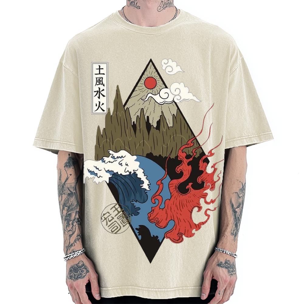 Four Elements Water Air Fire Earth Vintage Washed T-shirt