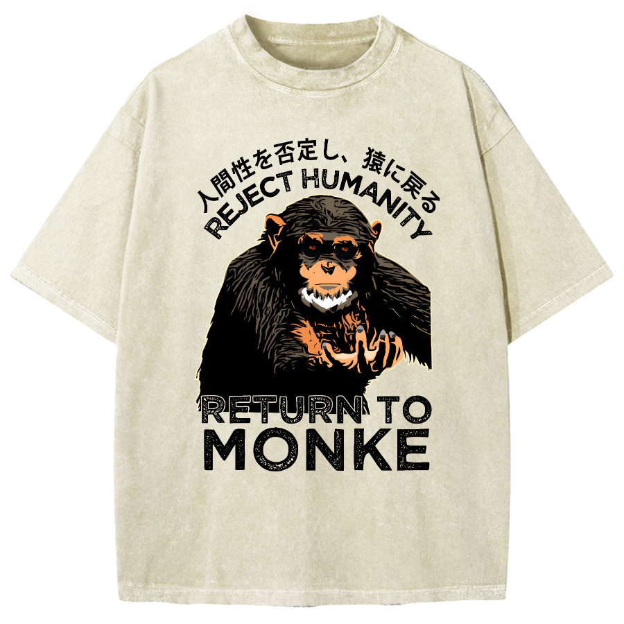 Return To Monke Funny Monkey Evolution Japanese Vintage Washed T-shirt