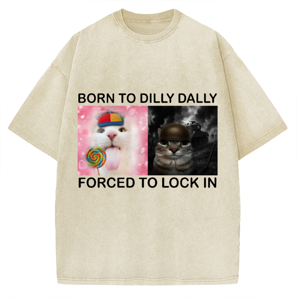 Born To Dilly Dally Forced To Lock In Meme Vintage Washed T-shirt
