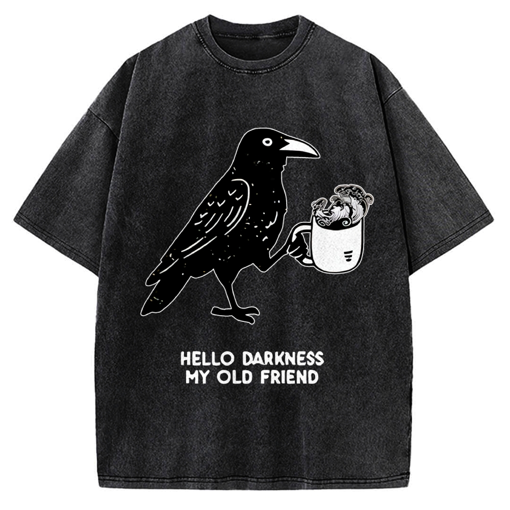 Crow Drinking Black Coffee Vintage Washed T-shirt
