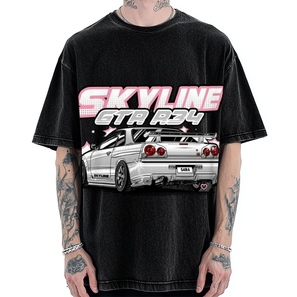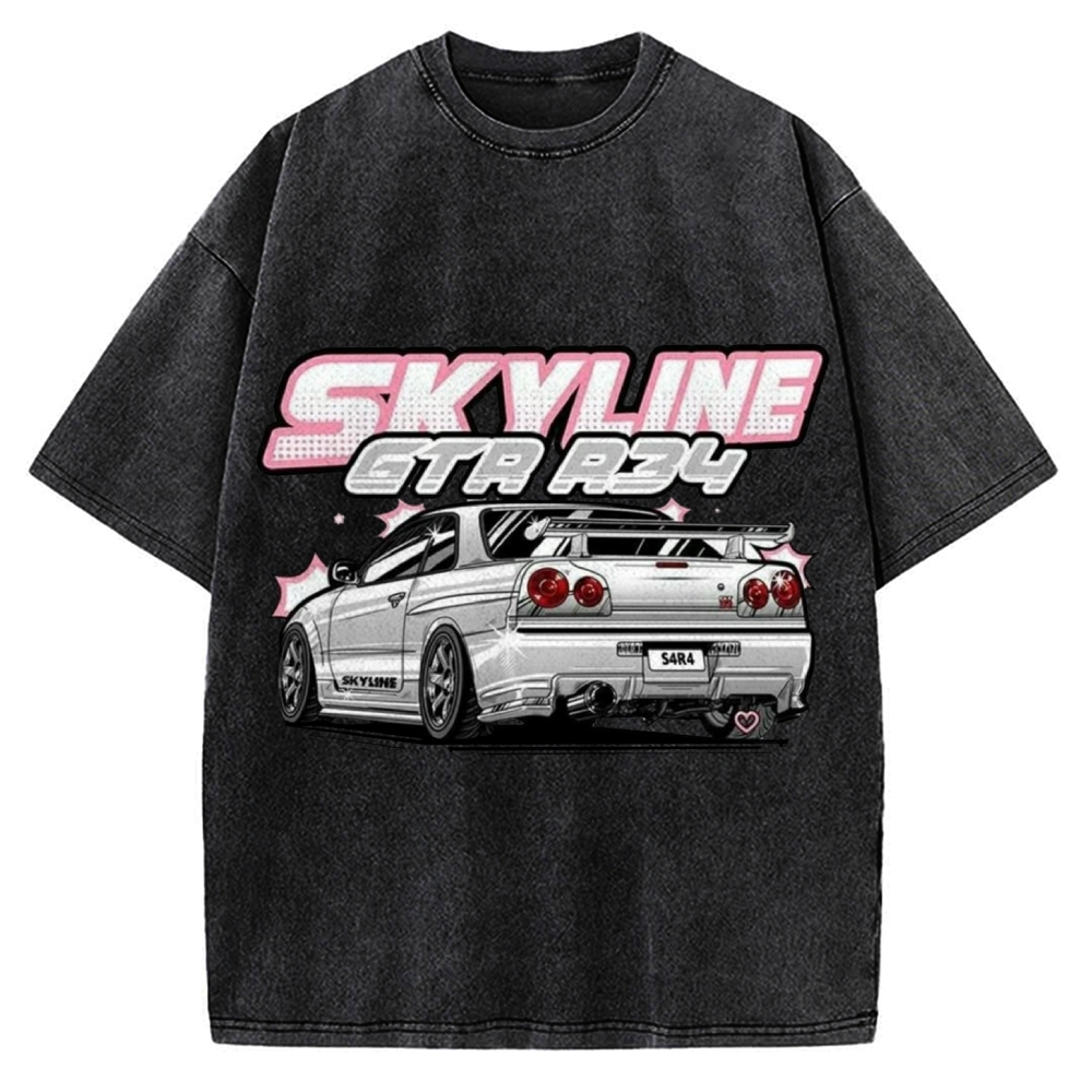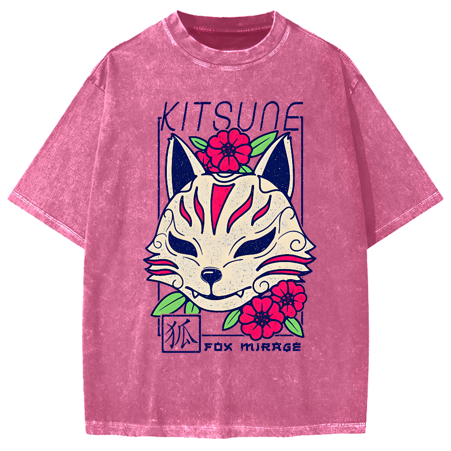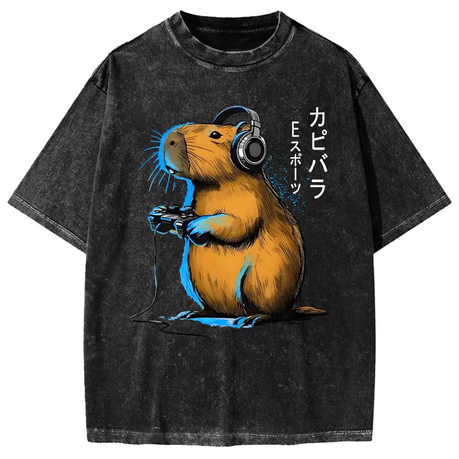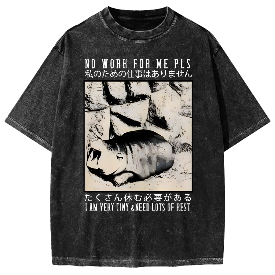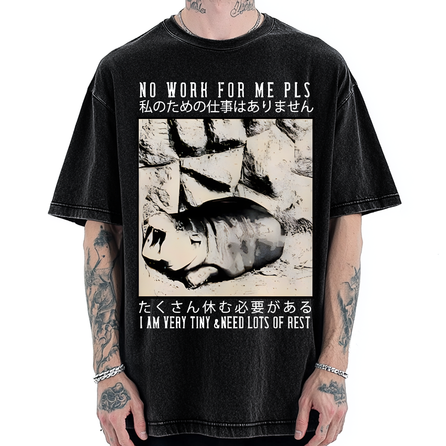 Soft And Cute animal belly Japanese Anime Vintage Washed T-shirt