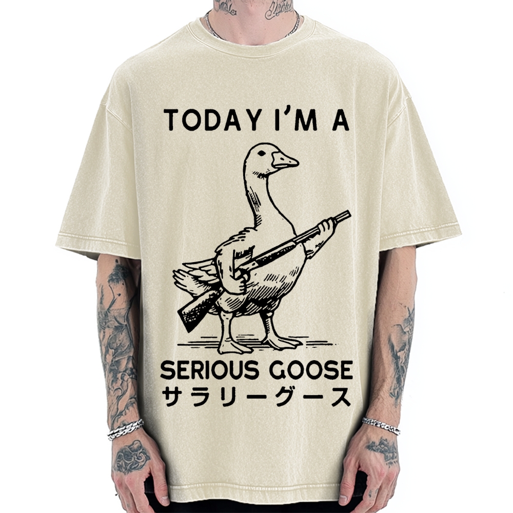 Serious Goose Silly Goose Funny Meme Vintage Washed T-shirt