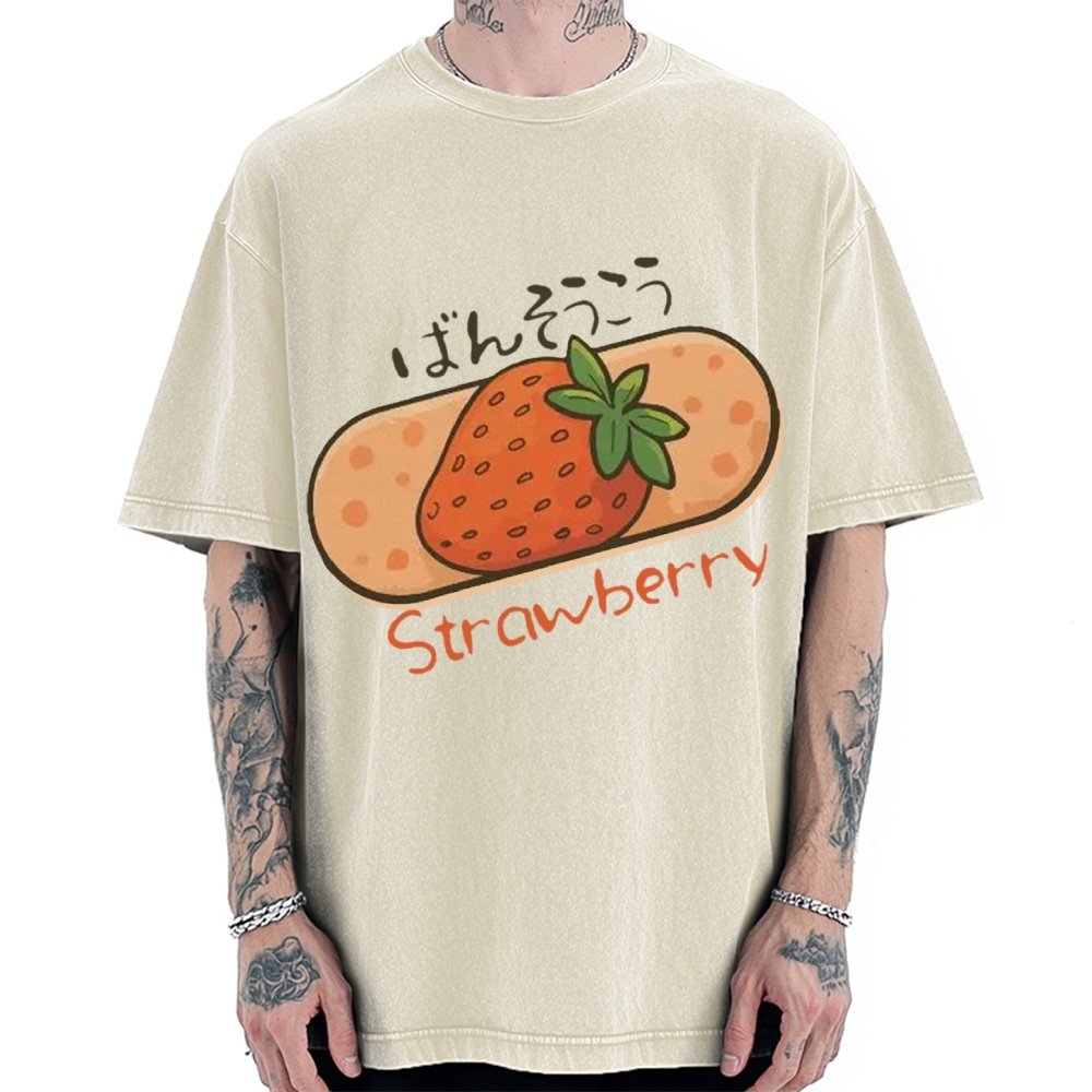 Strawberry Bandage Kawaii Japanese Vintage Washed T-shirt