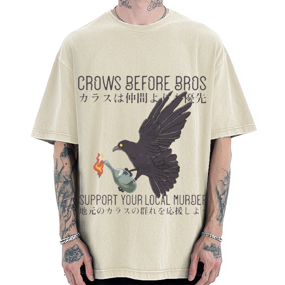 Crow Holding A Fire Bottle CROWS BEFORE BROS SUPPORT YOUR LOCAL MURDER Vintage Washed T-shirt