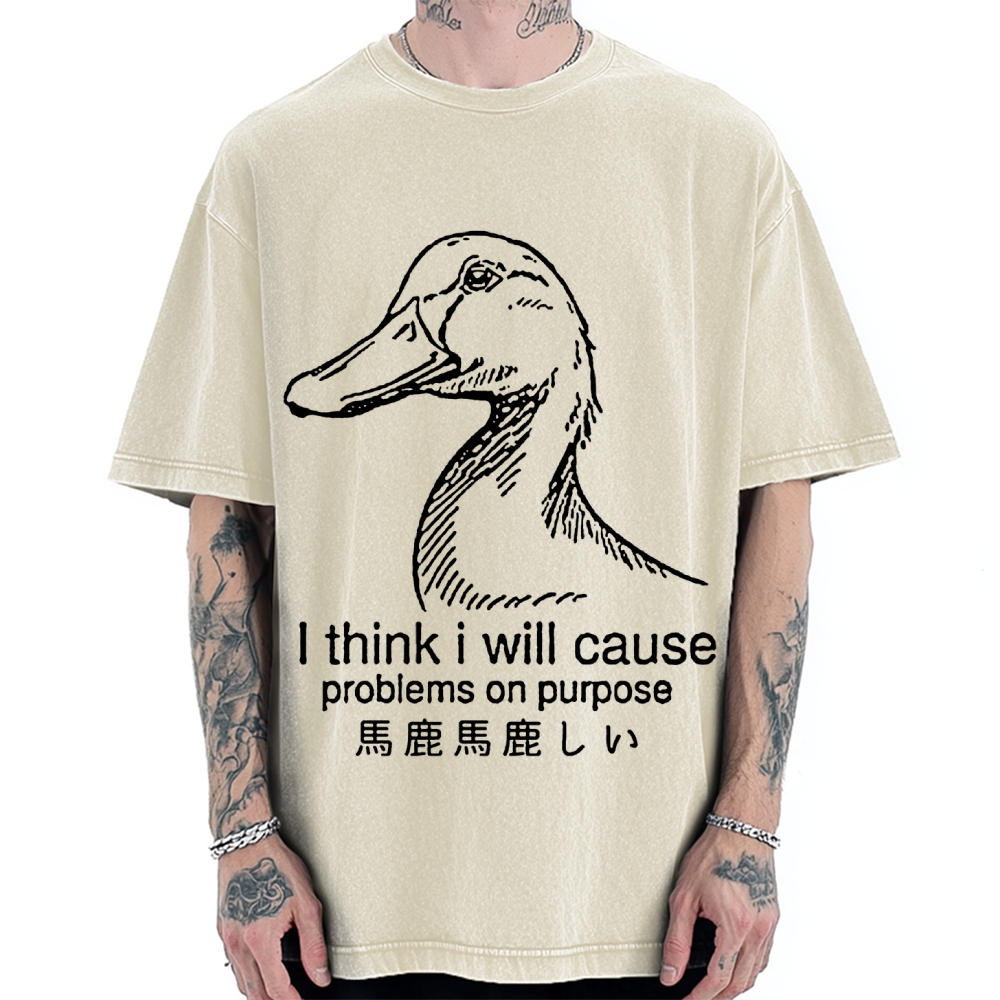 Funny Goose I Think I Will Cause Problems On Purpose. Meme Vintage Washed T-shirt