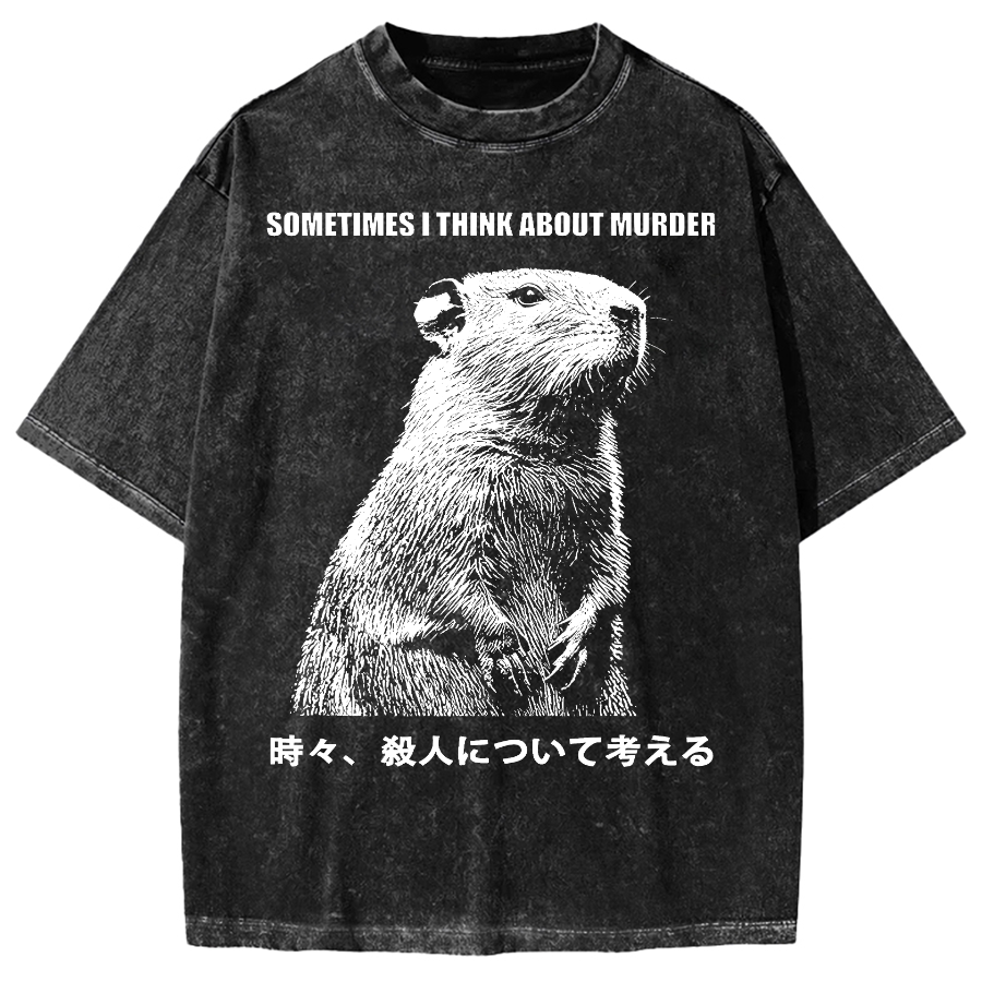Funny Capybara Thinks Of Murder Vintage Washed T-shirt