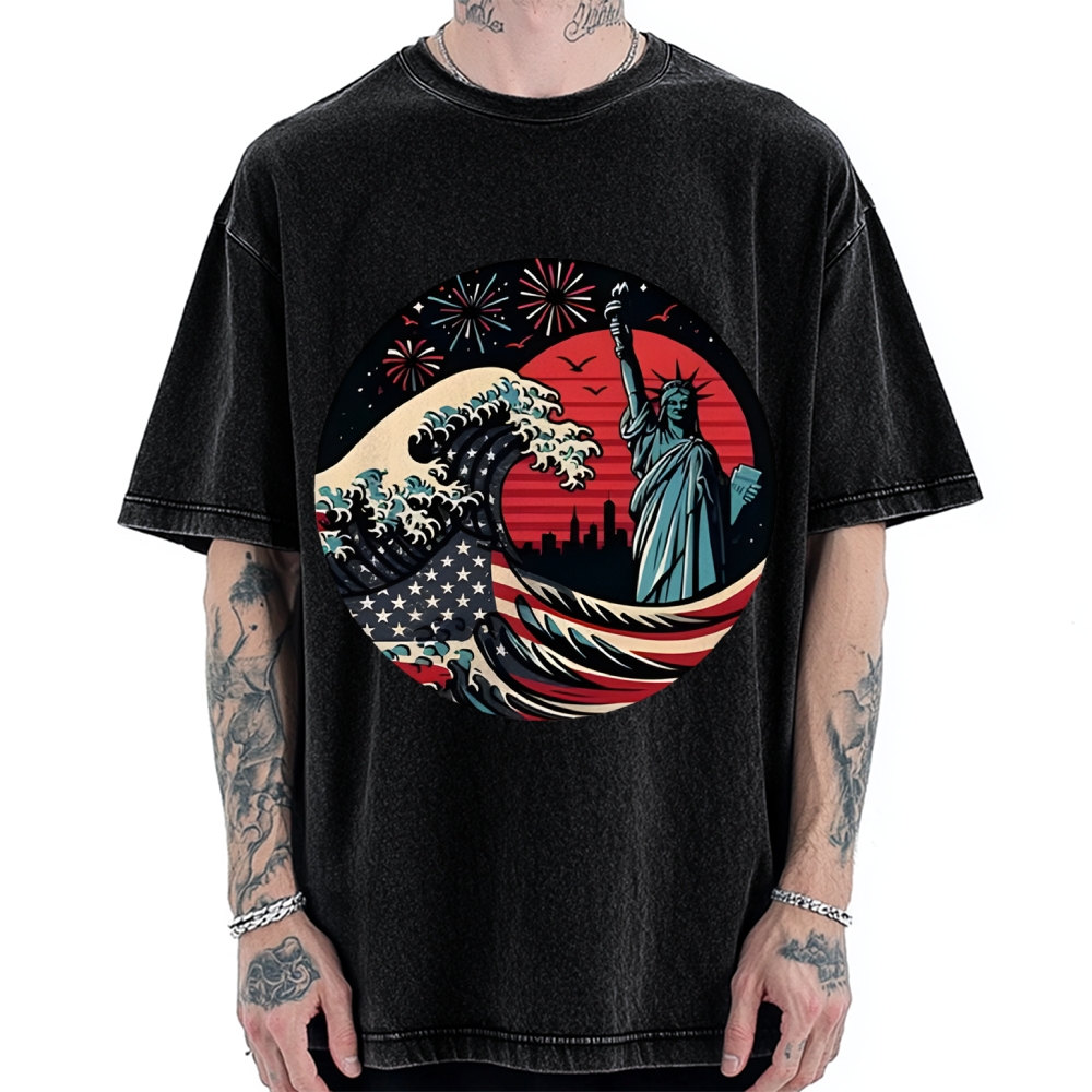The wave in New York oriental japanese style Vintage Washed T-shirt