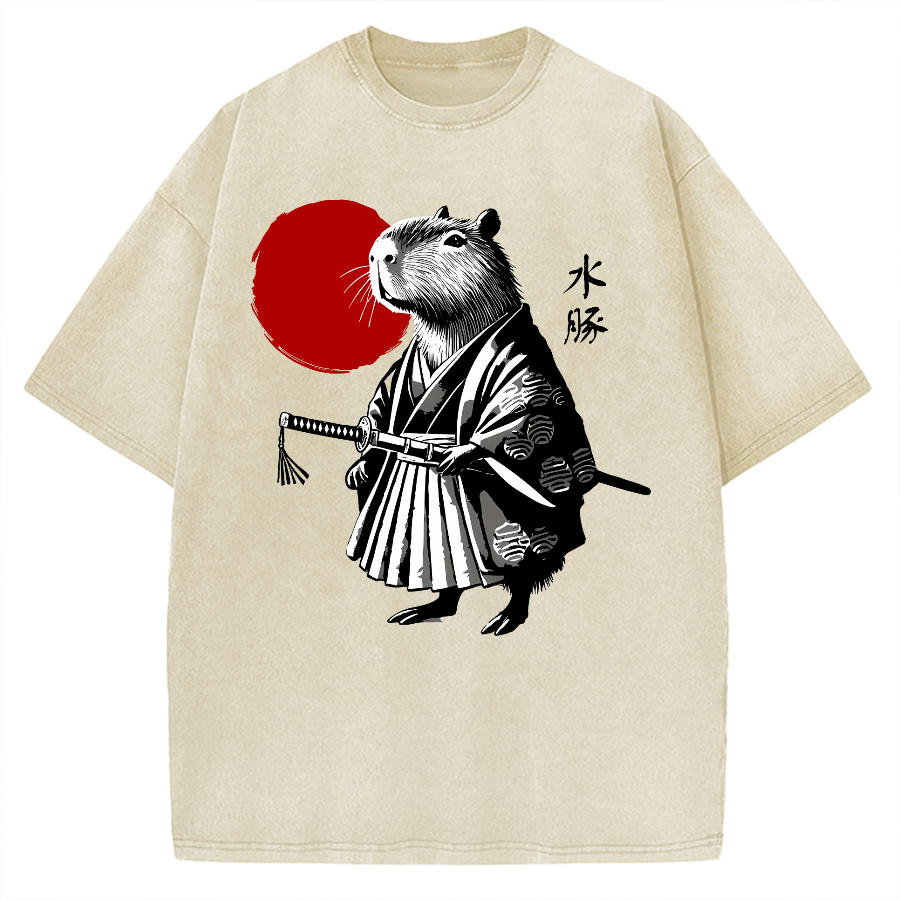 Retro Capybara Samurai Vintage Washed T-shirt