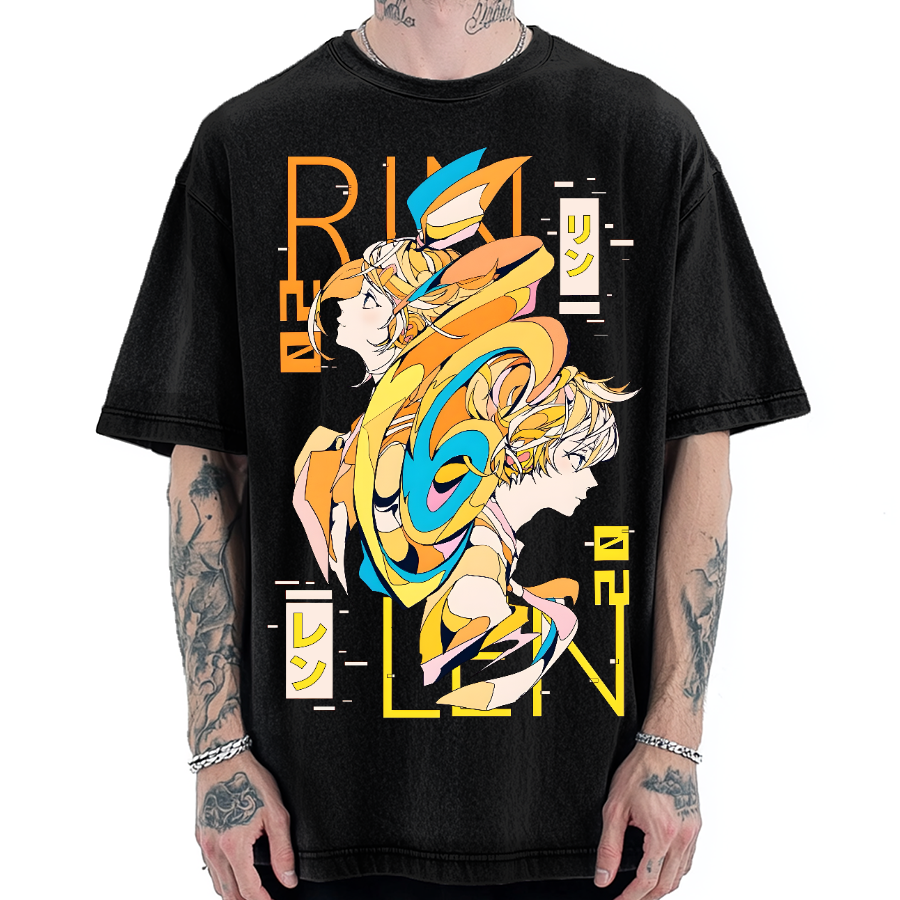 Japanese Anime Characters Kagami Rin & Ren Vintage Washed T-shirt