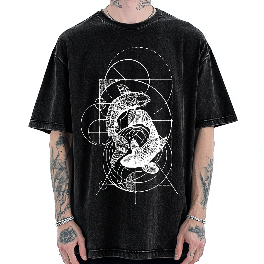 The Harmony Of Geometry And Koi Vintage Washed T-shirt