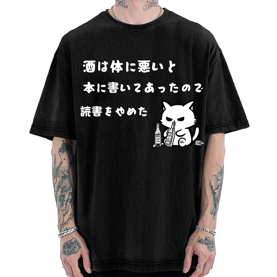 “酒は体に悪いと本に書いてあったので読書をやめた”Vintage Washed T-shirt