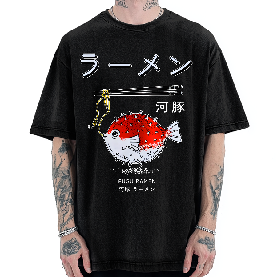 Fugu laman Japanese Style Vintage Washed T-shirt