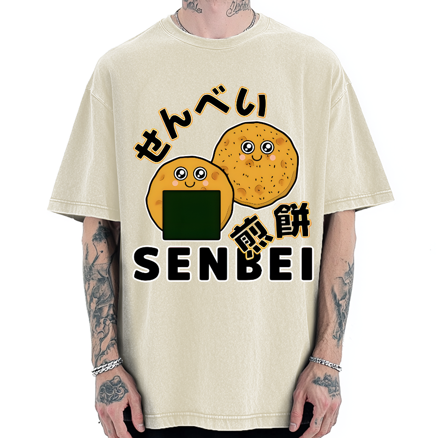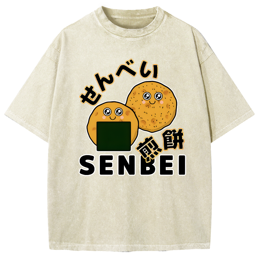 Kawaii Senbei Japanese Rice Cracker Snack Vintage Washed T-shirt