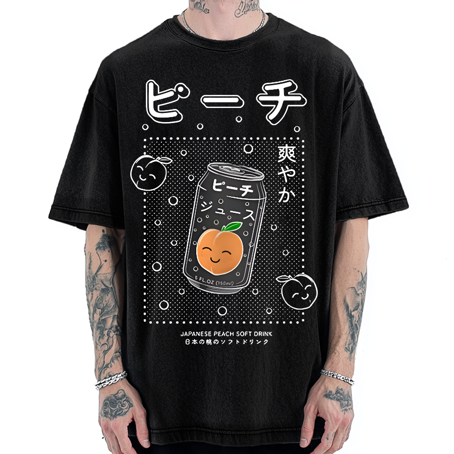 Japanese Style Peach Soda Vintage Washed T-shirt