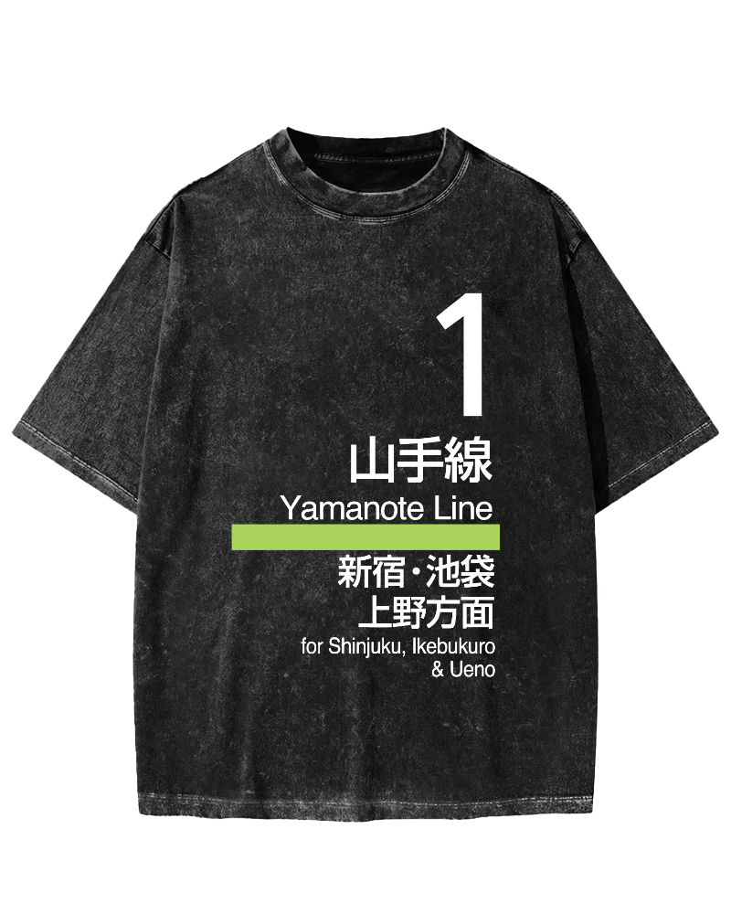 Yamanote Line Platform Sign Vintage Washed T-shirt