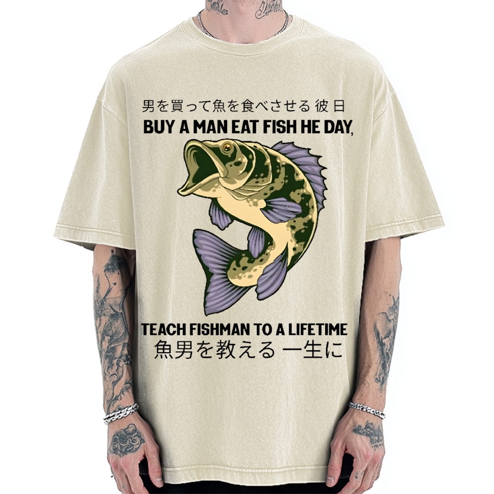 Buy A Man Eat Fish He Day Teach Fishman To A Lifetime Vintage Washed T-shirt