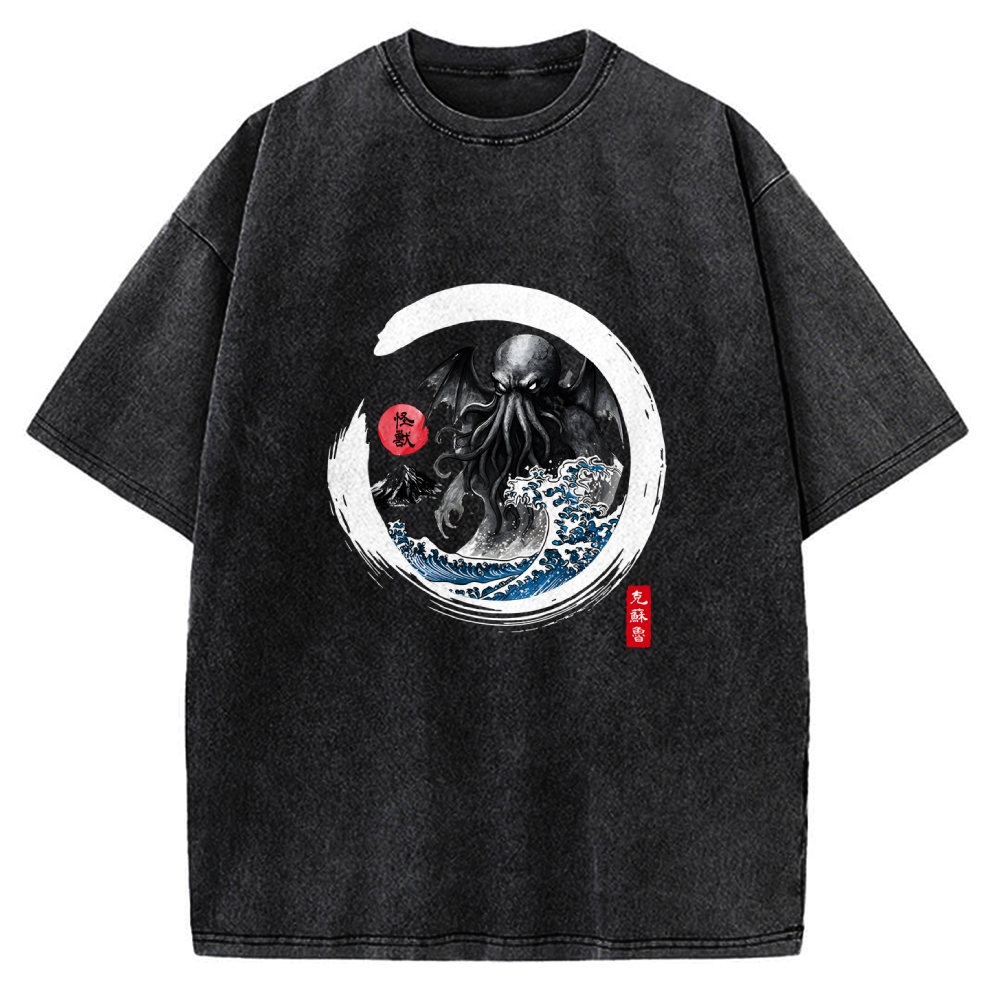 Anime Eye Horror Japanese Girl Vintage Washed T-shirt