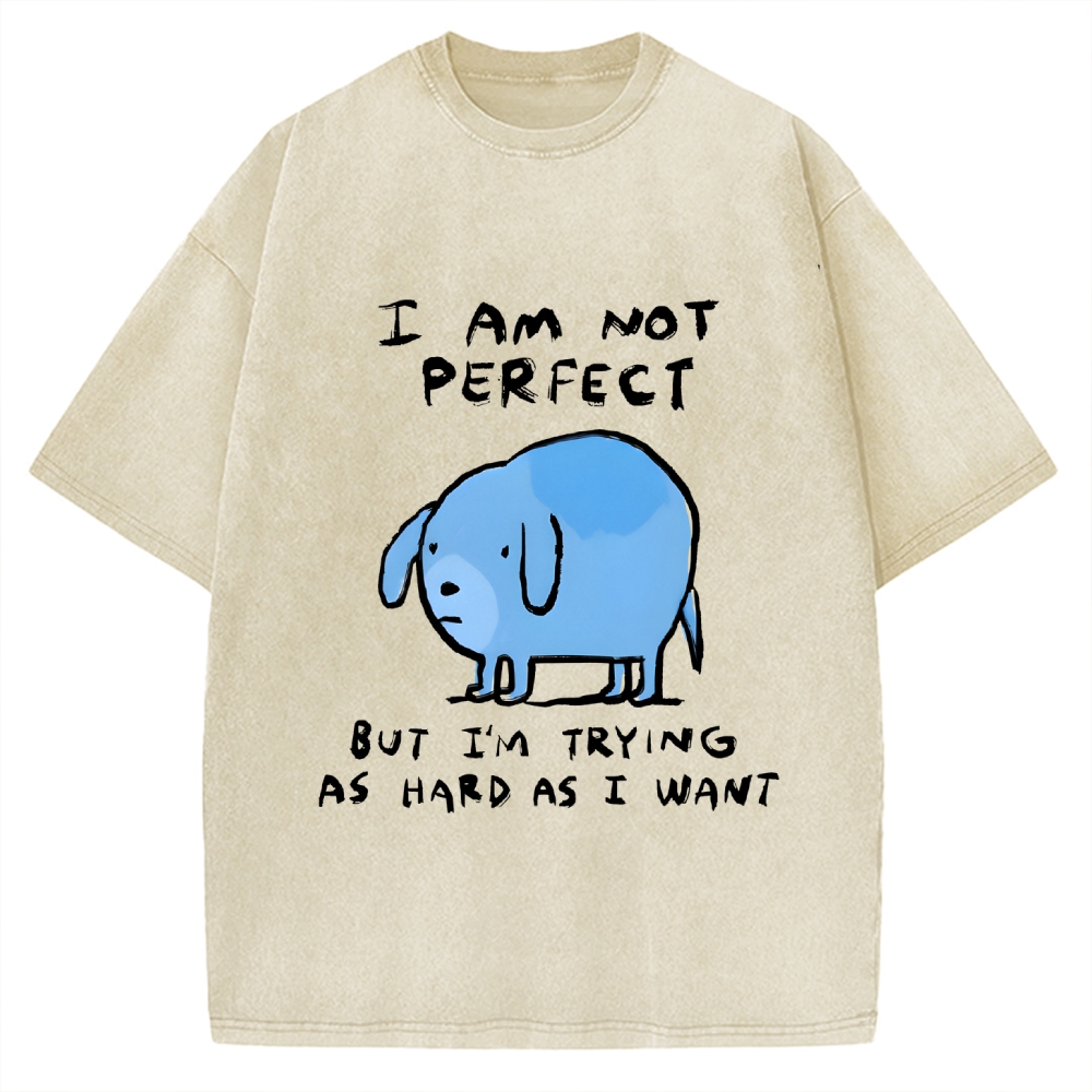 I Am Not Perfect Dog Printed Vintage Washed T-shirt