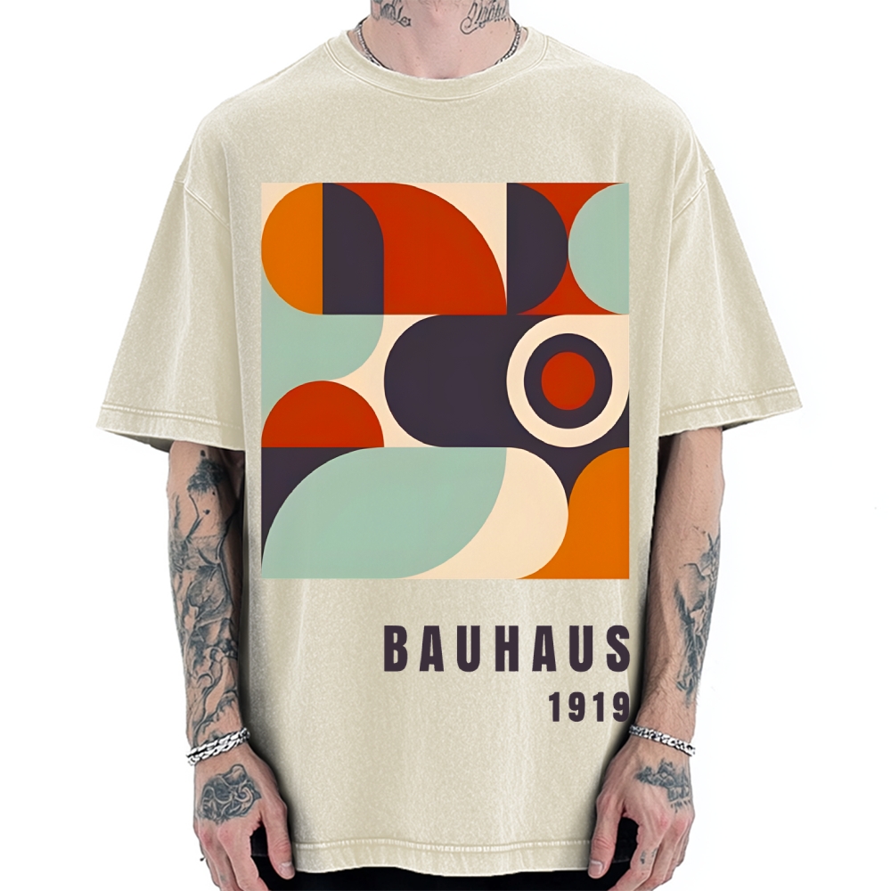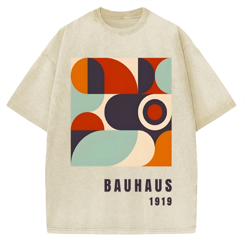 Bauhaus Geometric Printed Vintage Washed T-shirt
