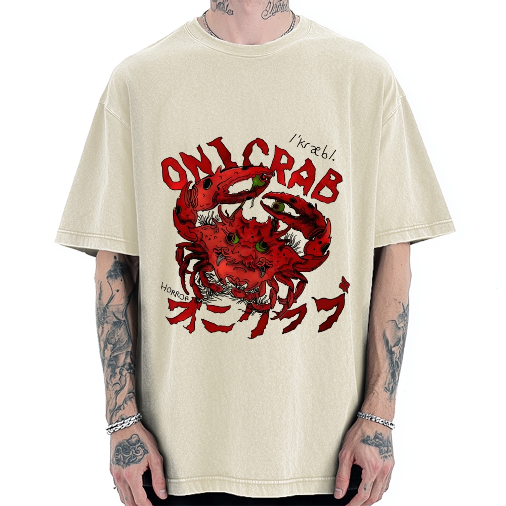 Evil Horror Oni Crab Yokai Japanese Vintage Washed T-shirt