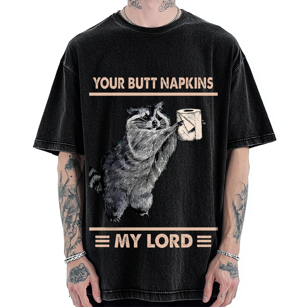 Your Butt Napkins My Lord Funny Raccoon Vintage Washed T-shirt