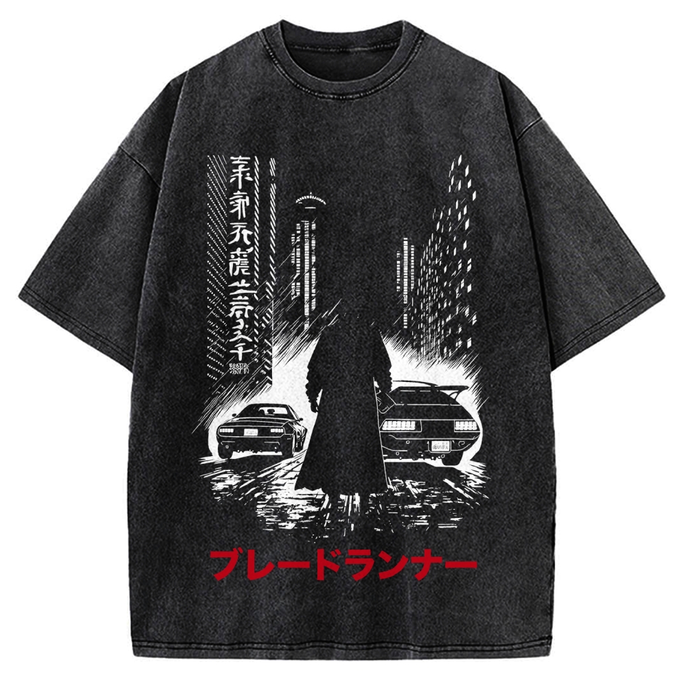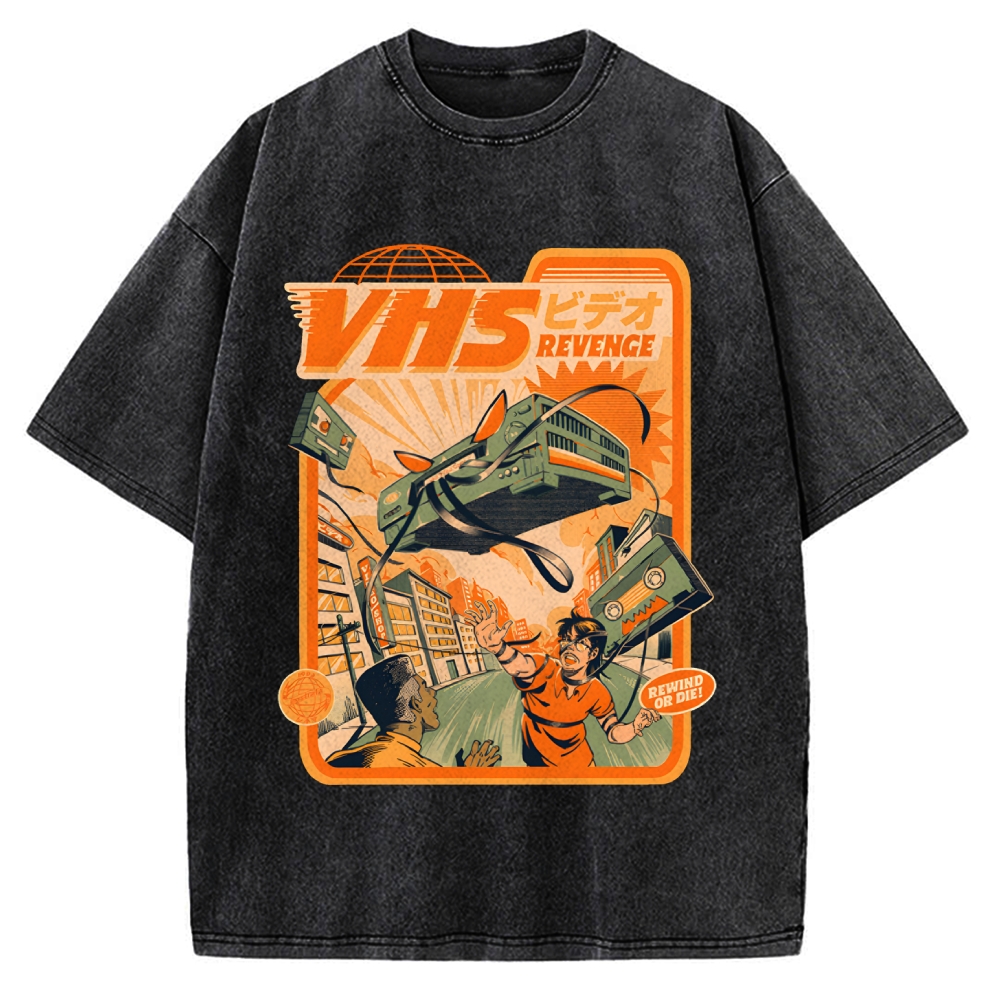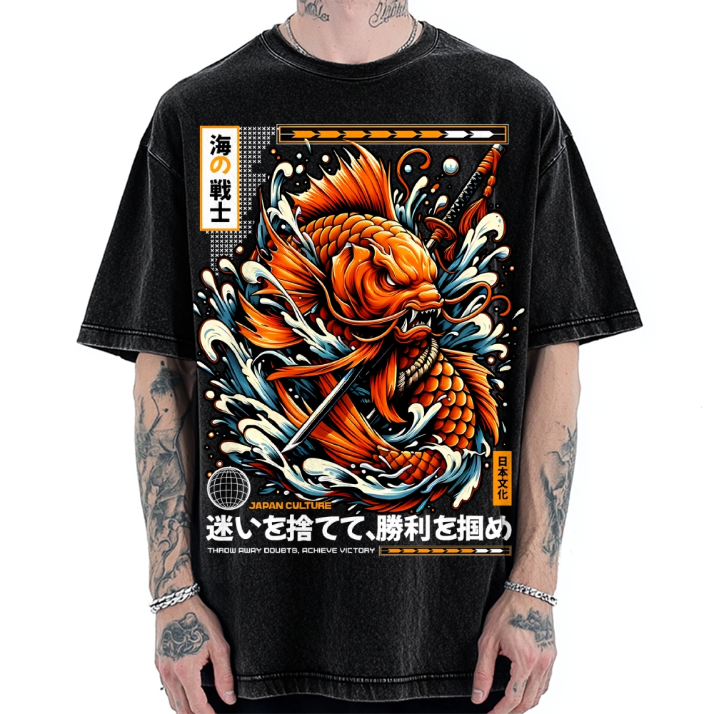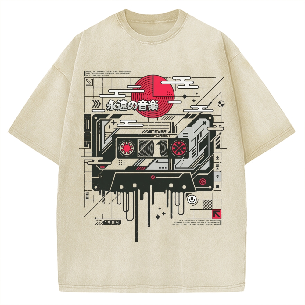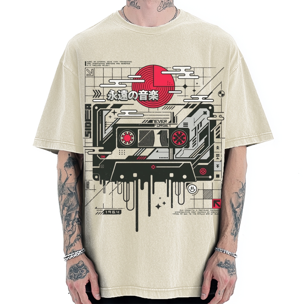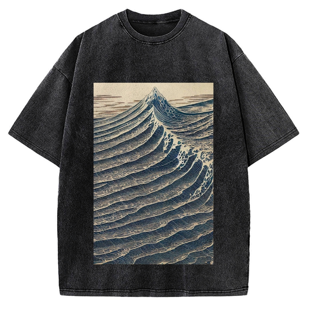 Vintage Japanese Wave Printed Vintage Washed T-shirt