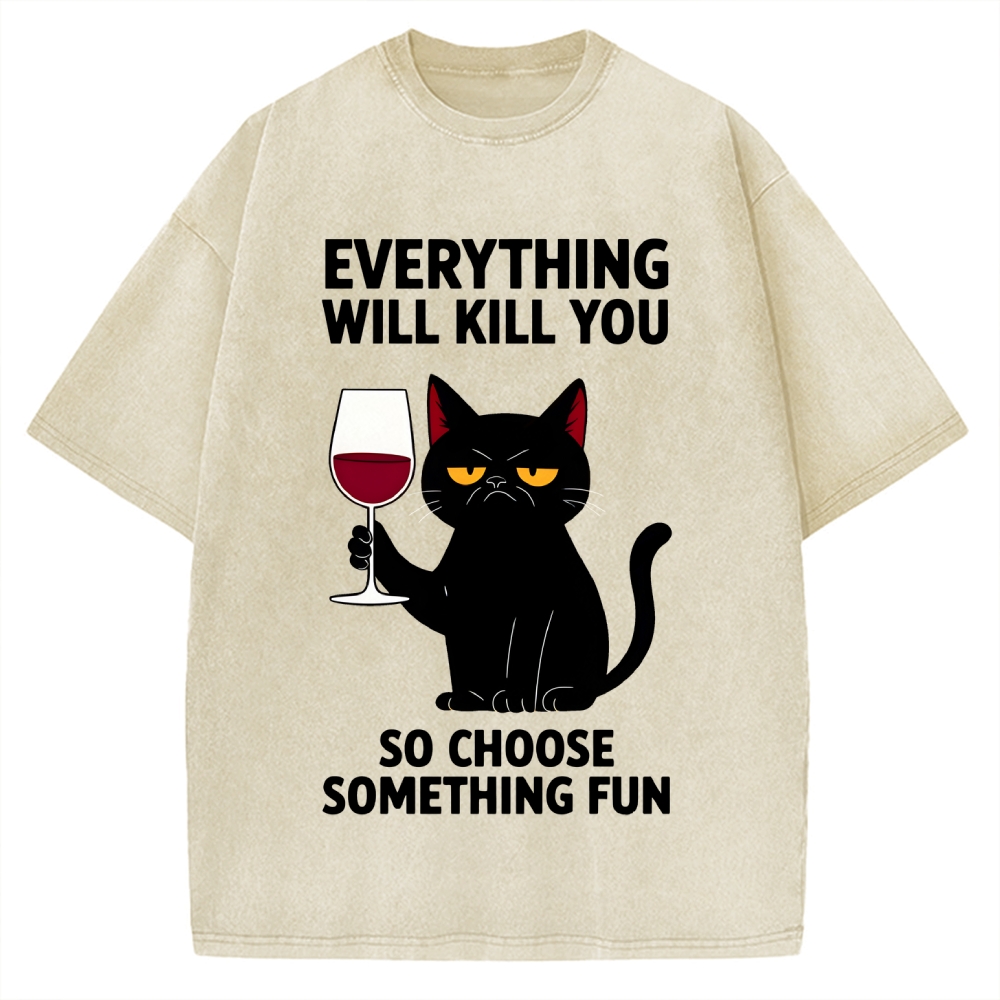 Chill Drinking Sardine Fish Printed Vintage Washed T-shirt
