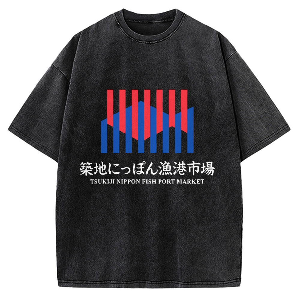 Tsukiji Nippon Fish Port Market Vintage Washed T-shirt