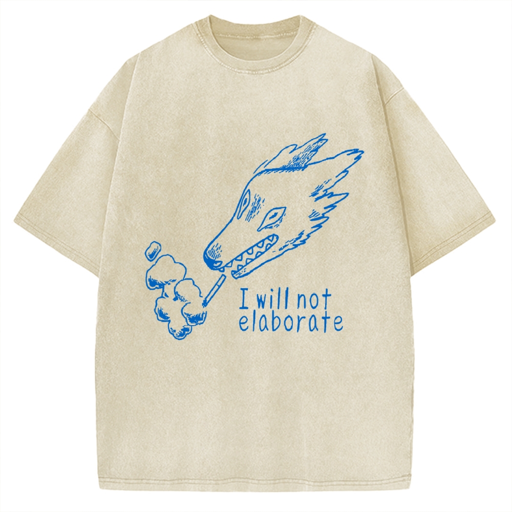 I will not elaborate Smoking Wolf Printed Vintage Washed T-shirt