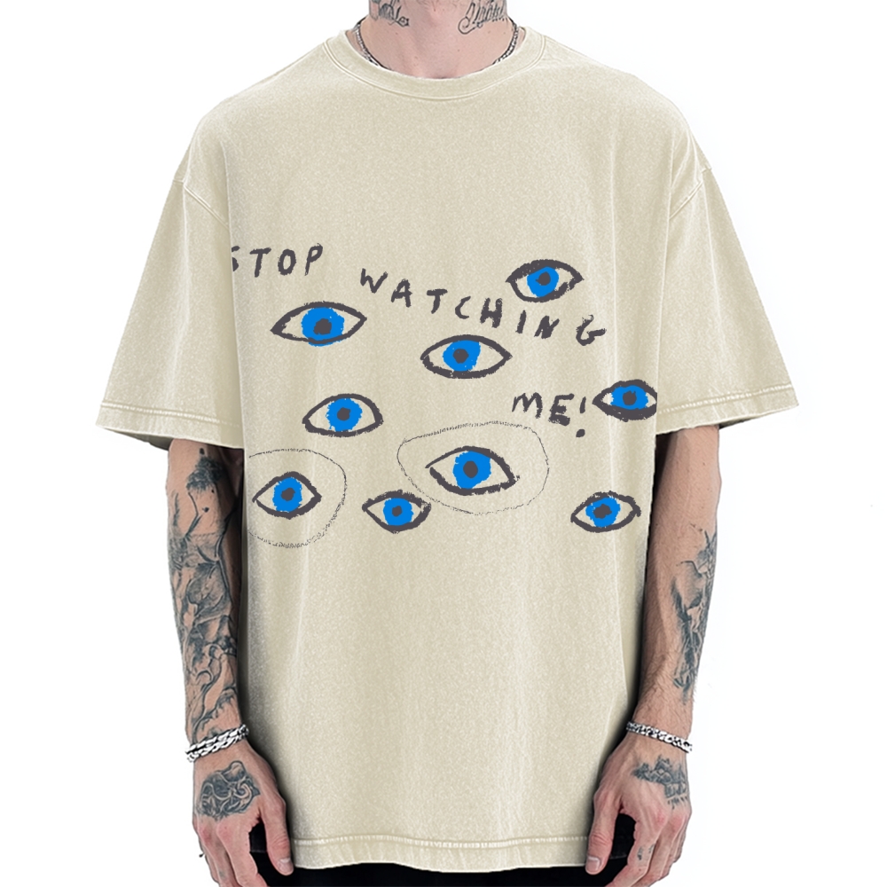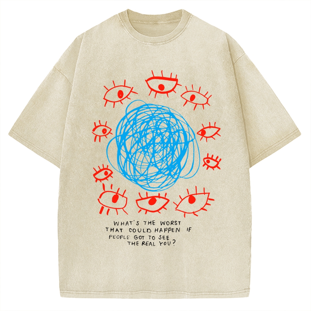 Artistic Abstract Eyes Printed Vintage Washed T-shirt
