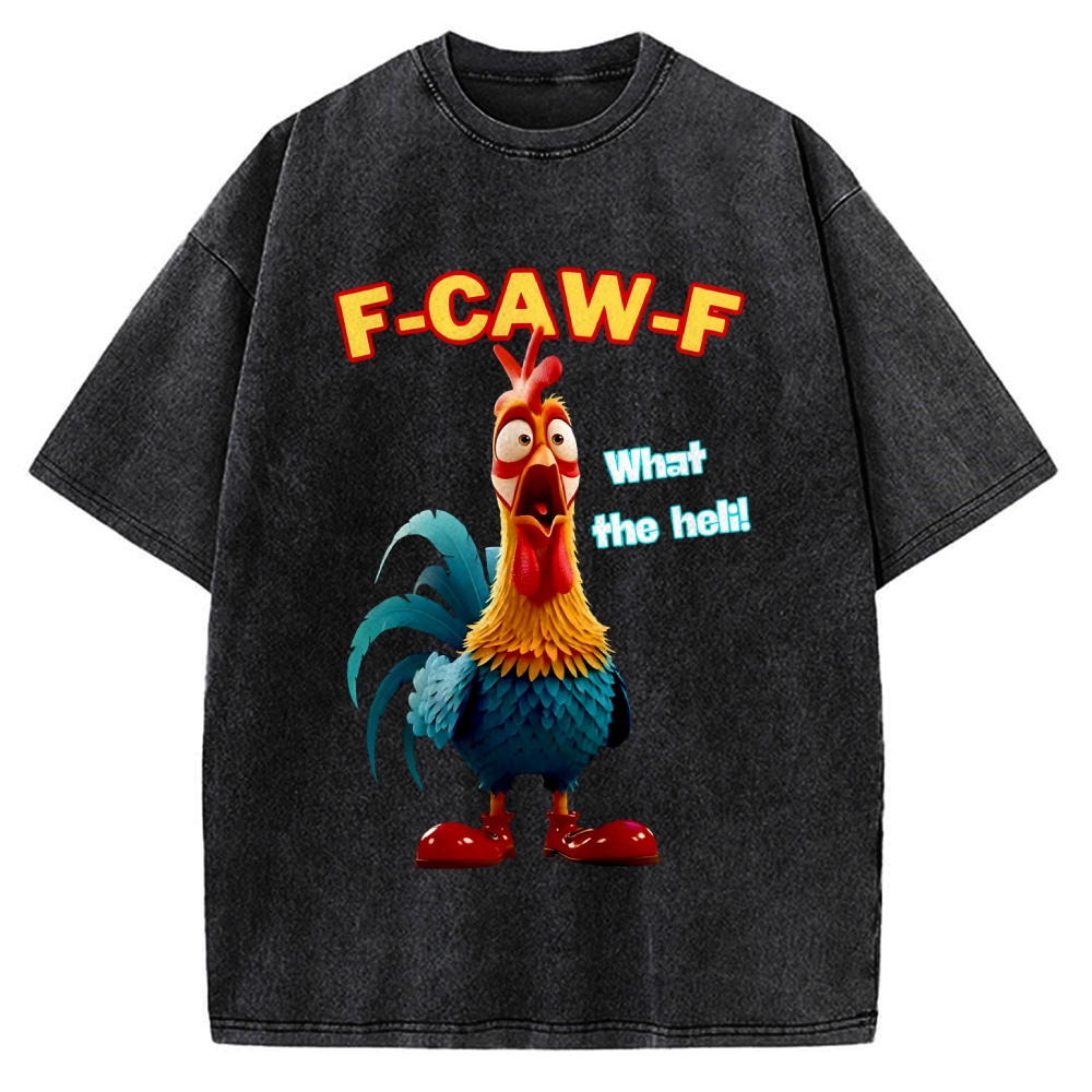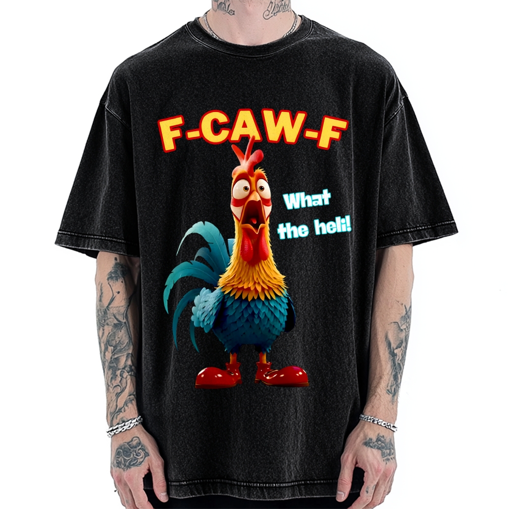 Colorful Black And White Fish Printed Vintage Washed T-shirt