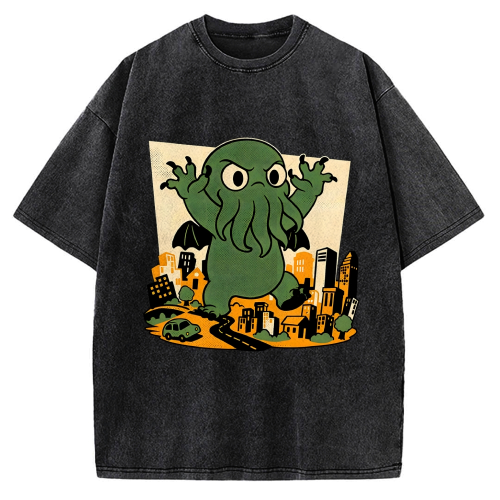Cthulhu City Destruction Vintage Washed T-shirt