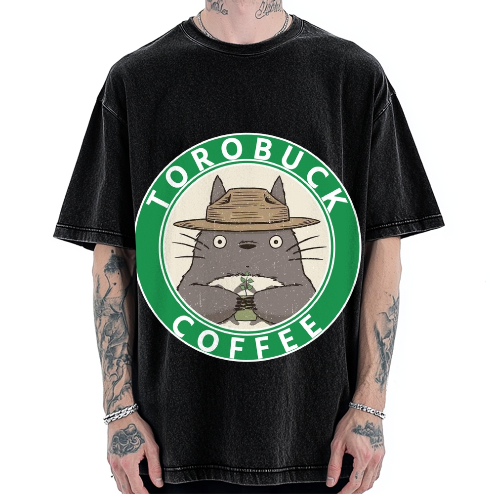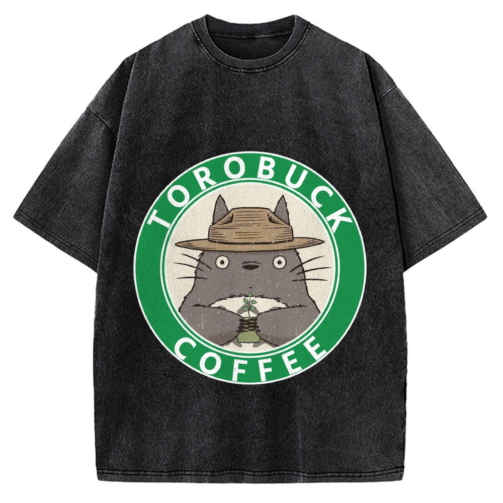Torobuck Coffee Japanese Anime Cute Fantasy Anime Vintage Washed T-shirt