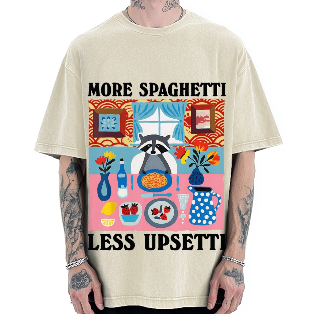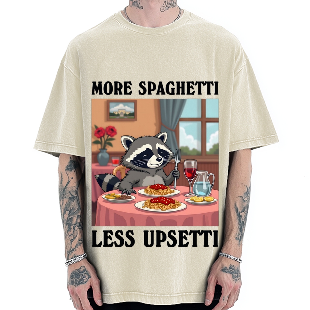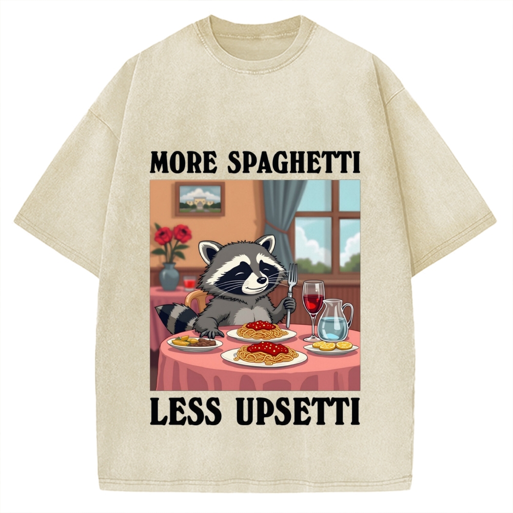 More Spaghetti Less Upsetti Raccoon Funny Art Vintage Washed T-shirt