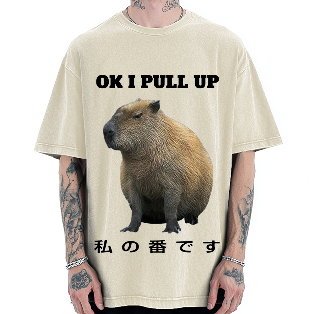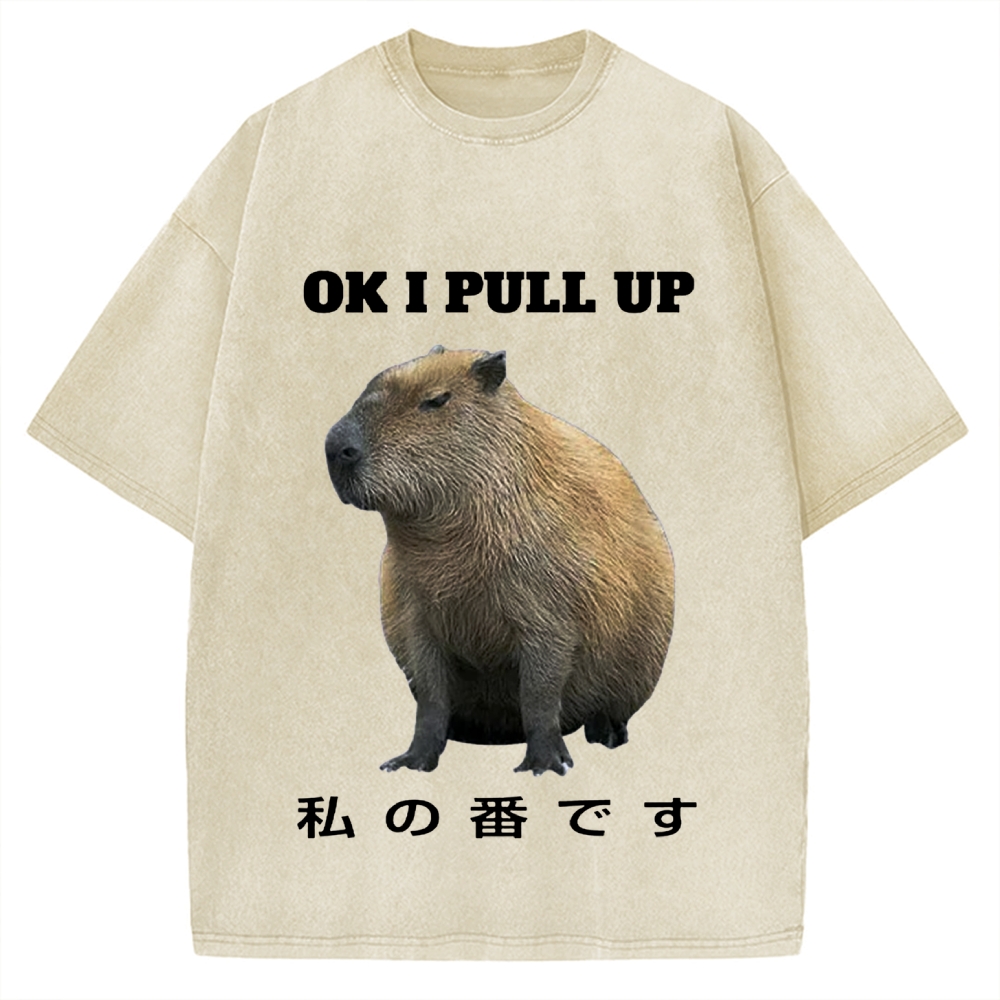 Ok I Pull Up Capybara Vintage Washed T-shirt