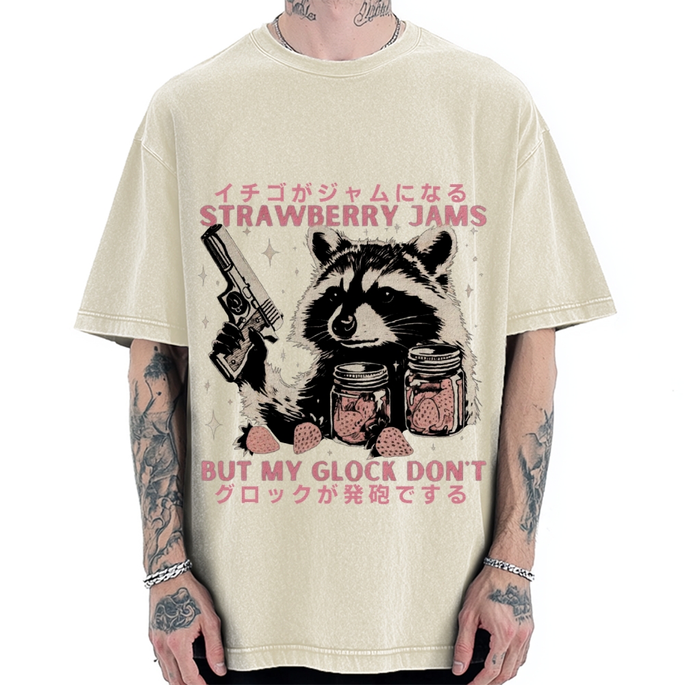 Strawberry Jams But My Glock Don't Raccoon Vintage Washed T-shirt