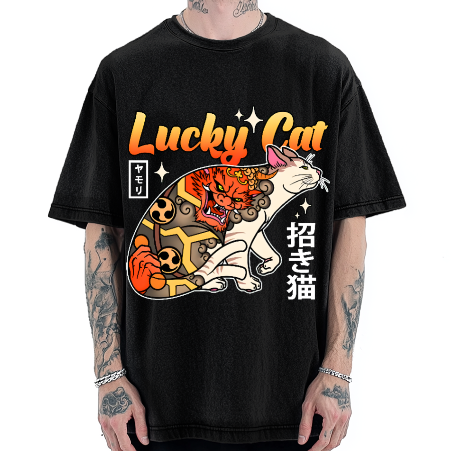 Geisha Cat Japanese Ink painting Vintage Washed T-shirt