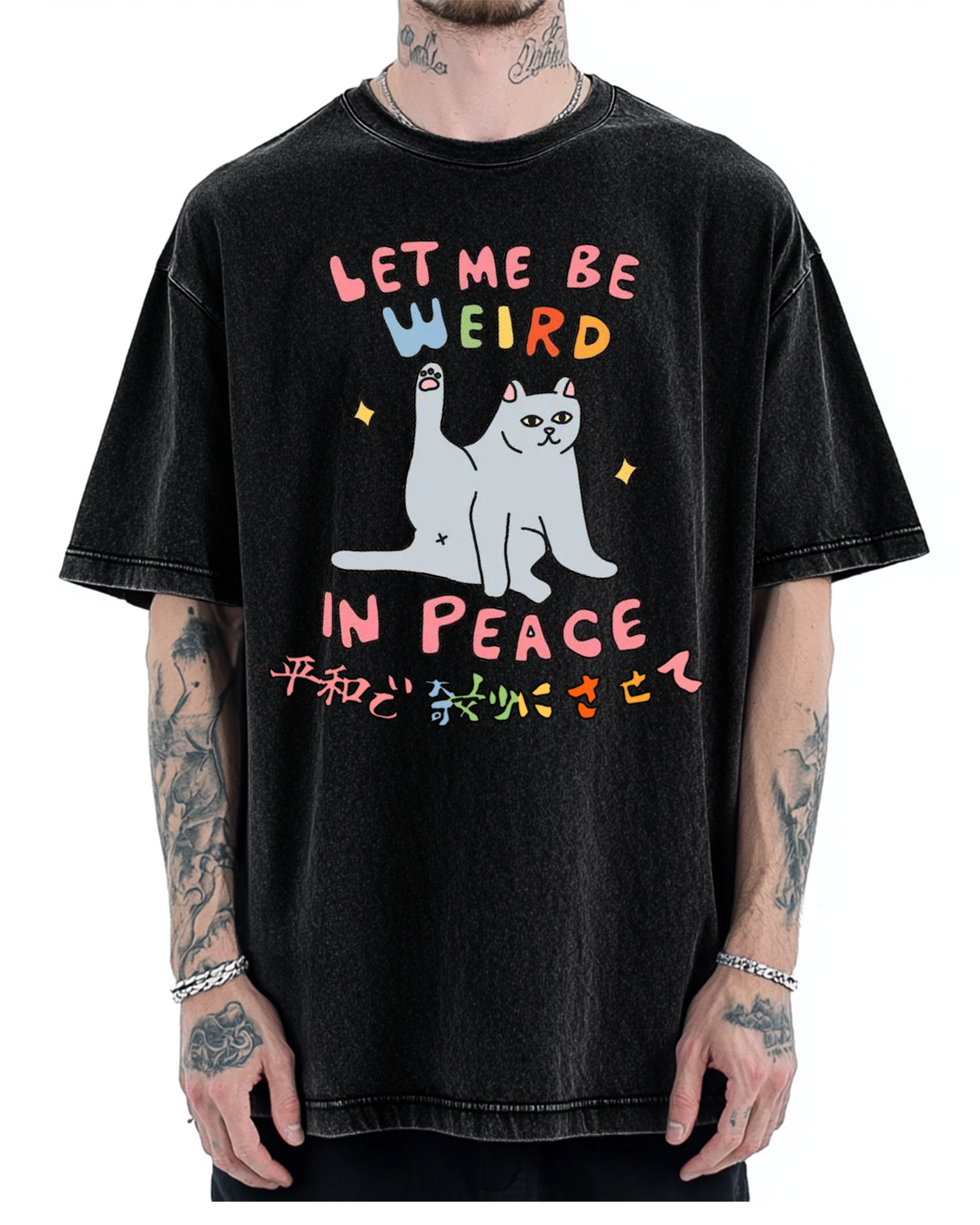 Let Me Be Weird In Peace Funny Cat Vintage Washed T-shirt