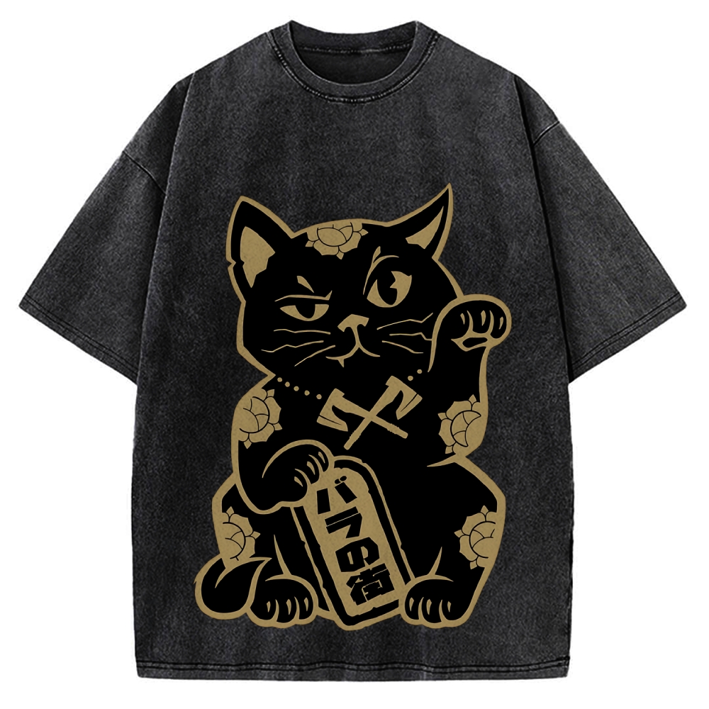 Yakuza japan Mafia Lucky Cat Vintage Washed T-shirt