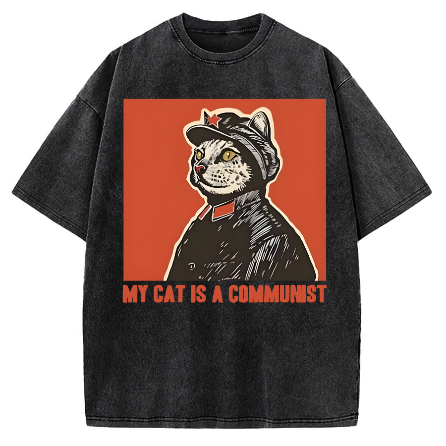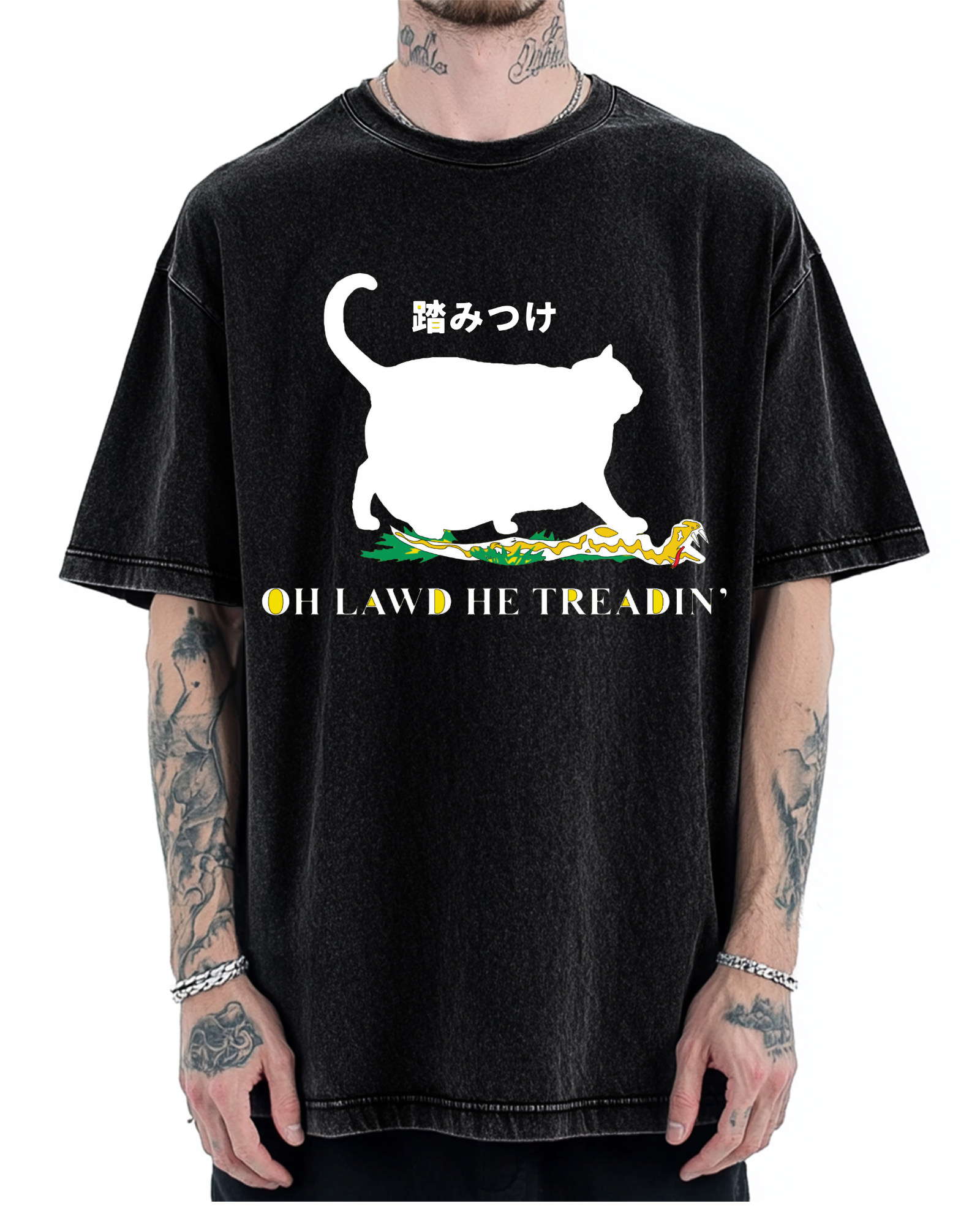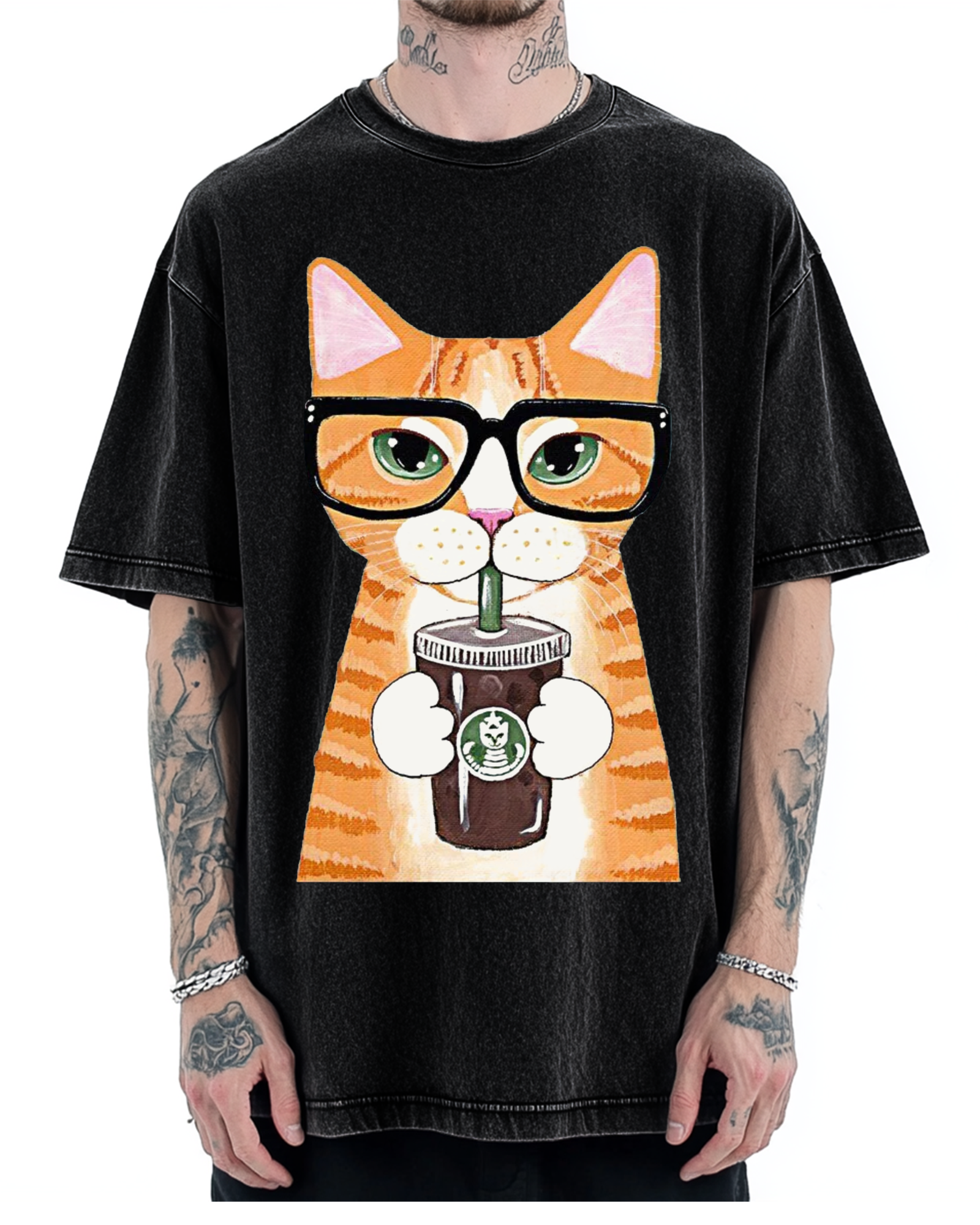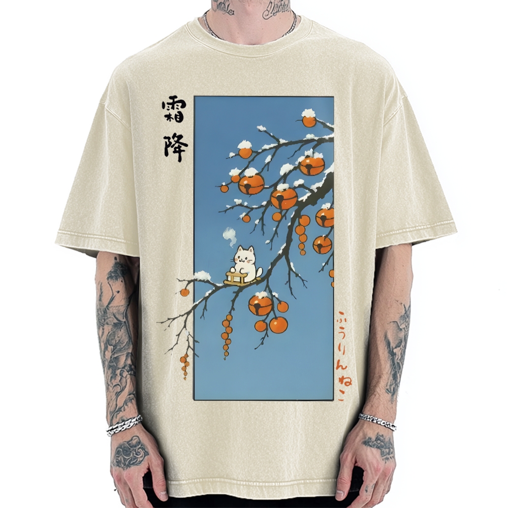 Cat Winter Vibe Kawaii Japanese Vintage Washed T-shirt