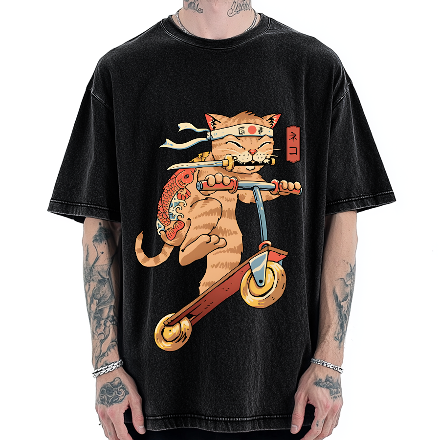 Lucky Cat Bus Japanese Anime Vintage Washed T-shirt