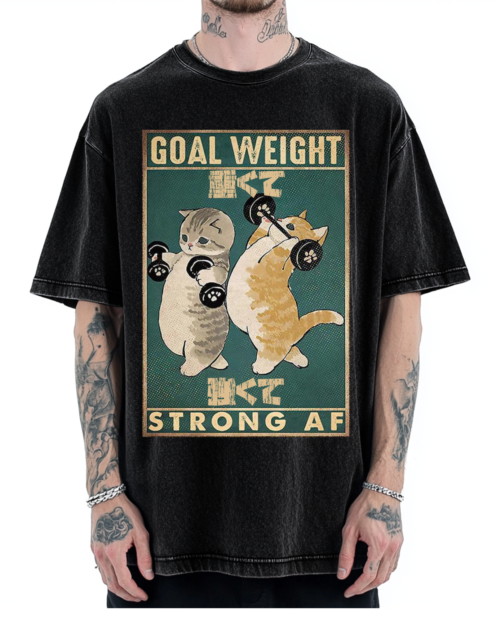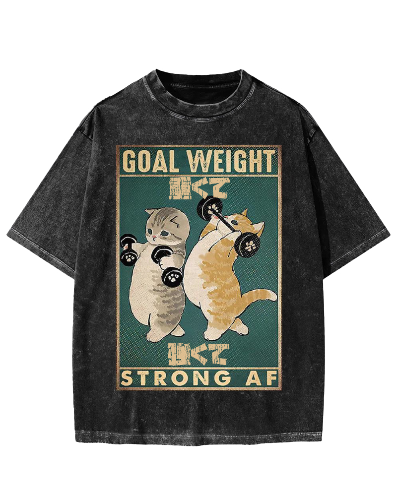 Funny Cat Goal Weight Strong AF Vintage Washed T-shirt
